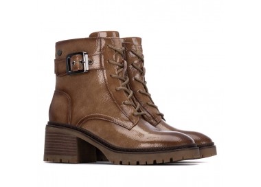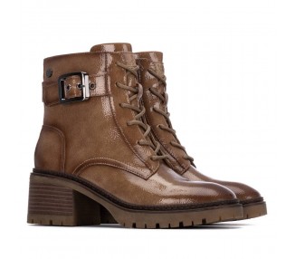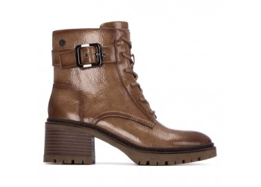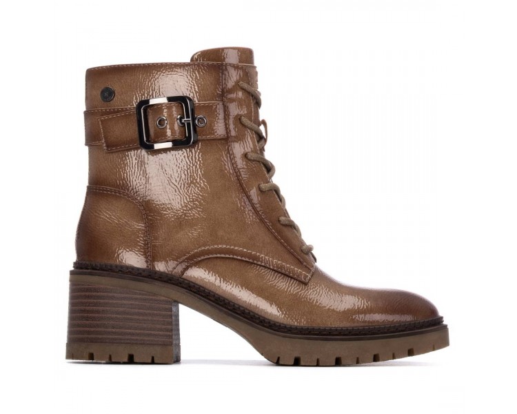 Botín de mujer y joven estilo militar de la marca Xti, fabricado en material charol, que le da un toque brillante y moderno. Con hebilla decorativa en el lateral. Cuenta con una cremallera interior para facilitar la puesta, brindando comodidad y rapidez al calzarse. Ideal para un look audaz y urbano con un toque de distinción. Plantilla extraíble. Este modelo ha obtenido el certificado vegano por la organización mundial PETA (Organización de los derechos de los animales).