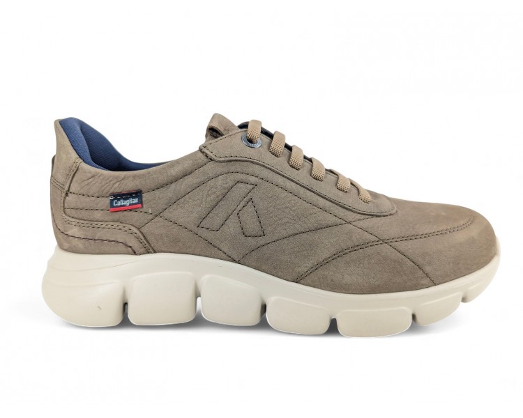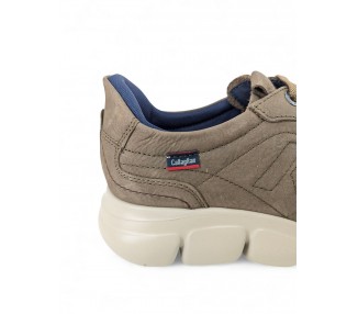 Zapato sport para hombre y joven, realizado en piel nobuck natural ultrasuave. Forro transpirable en tejido técnico. Plantilla extraíble acolchada de gran comodidad. Tecnología “Adaptaction” que se adapta al pie y piso de mínimo peso XL extralight, material de gran ligereza y flexibilidad que favorece la amortiguación. Cordón central elástico. Hecho por la marca Callaghan.