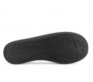 Comodísima zapatilla de andar por casa descalza para hombre topo mocasín. Realizada en textil muy suave y aterciopelado con forro textil afelpado y suela flexible y antideslizante. Plantilla extraíble. Fabricado en España por la marca Rodevil.