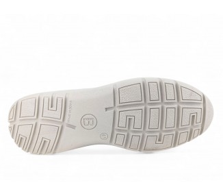 Zapato Ancho Especial muy cómodo para mujer, hecho en suave piel lagrimada y combinado con licra de malla de nilón por las costados. Interior realizado en material técnico con la lengüeta acolchada. Plantilla extraíble. Es un zapato de estilo urbano y actual. Adorno de cadena en color nácar sobre la pala. Hecho por la marca Doctor Cutillas.