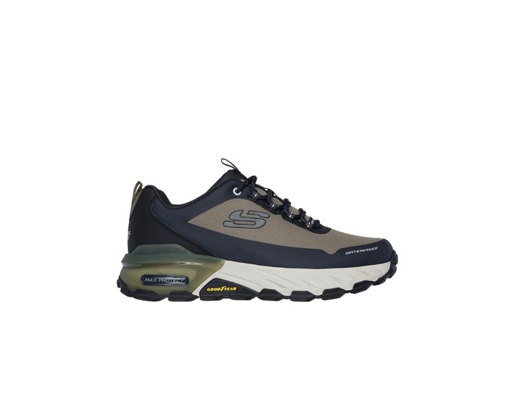 La comodidad deportiva y la tracción duradera se unen en la Skechers Max Protect - Fast Track. Modelo de trail con cordones, empeine de material sintético resistente al agua Waterproof y malla, plantilla Skechers Air-Cooled Memory Foam® y suela resistente de Goodyear®.