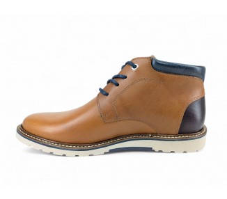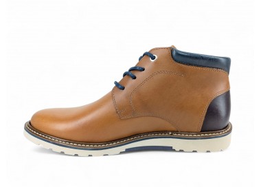 Botín de cordón vestido para hombre y joven. Es un modelo bonito indispensable en cualquier armario. Sus líneas clásicas lisas y la combinación de color en el talón y cuello, hacen una buena opción para tus looks más vestidos. Vira de color cosida al piso. Hecho por la marca Clayan.