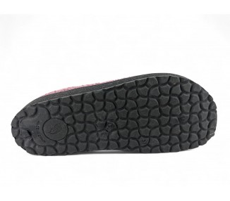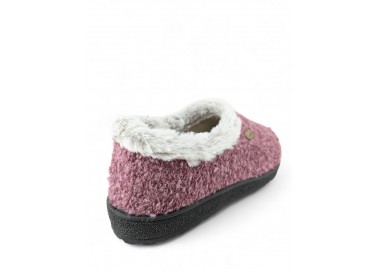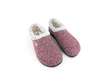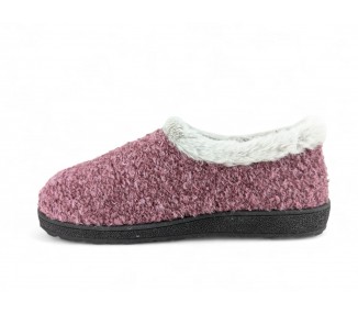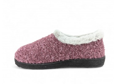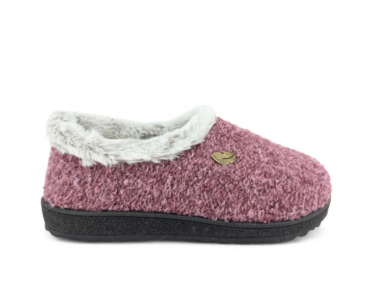Comodísima zapatilla cerrada de andar por casa para mujer, realizada en material textil con motivos jaspeados. Ribete de pelo con plantilla de espuma de PU transpirable de alta recuperación que se adapta completamente a la anatomía del pie. La composición de esta zapatilla contiene aroma a eucalipto con tratamiento antibacterias. Puntera con calce ancho. Fabricada en España por la marca Plumaflex.