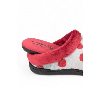 Comodísima zapatilla cerrada de andar por casa para mujer, realizada en material textil con motivos rallados longitudinales. Ribete de pelo con plantilla extraíble de espuma de PU transpirable de alta recuperación que se adapta completamente a la anatomía del pie. Fabricada en España por la marca Plumaflex.
