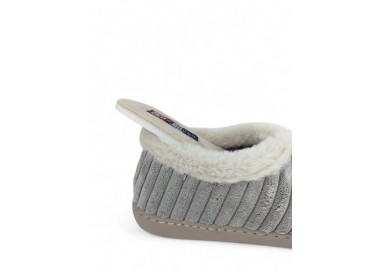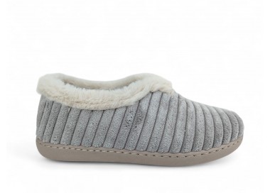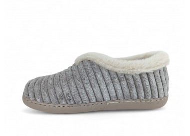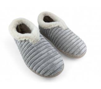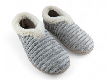Comodísima zapatilla de andar por casa cerrada para mujer y joven. Realizada en textil muy suave y aterciopelado con forro textil afelpado y suela flexible y antideslizante. Ribete de pelo. Motivo en pala de pana gruesa. Plantilla extraíble. Fabricado en España por la marca Gema García.
