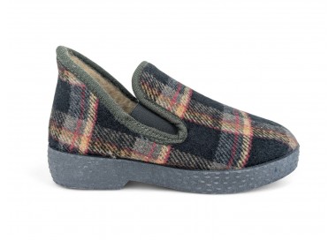 Calentita zapatilla de andar por casa para caballero, con motivo de cuadros bordados. Copete-empeine alto. Exterior realizado en textil muy suave y el interior afelpado con forro de textil. Piso termoaislante que te aislará mucho más del frio suelo. Es flexible y antideslizante. Fabricado en España por la marca Cruan.