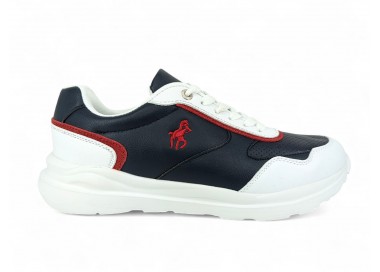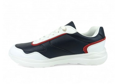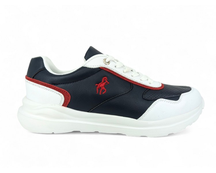 Zapatilla deportiva para hombre, realizada en PU sintético y refuerzo en la zona del empeine. Cierre de cordón de color al tono. Boca y lengüeta acolchada aportando más comodidad al pie. Plantilla extraíble memory sponge. Patín fabricado en EVA para mayor ligereza.