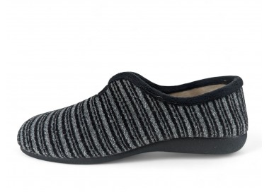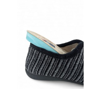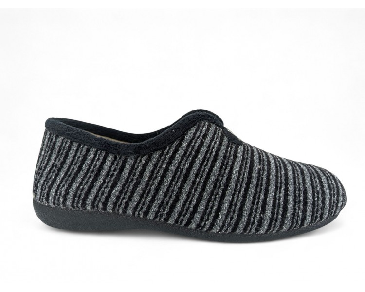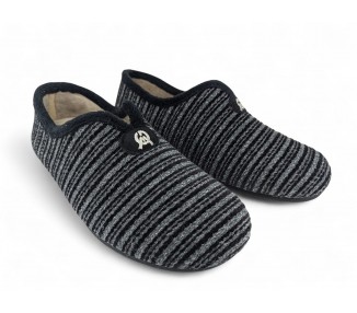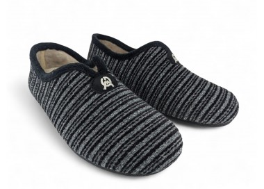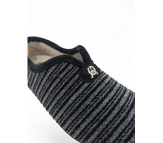 Comodísima zapatilla de andar por casa cerrada para hombre y joven, con motivo en pala de chinilla bordada. Realizada en textil muy suave y aterciopelado con forro textil afelpado y suela flexible y antideslizante. Plantilla extraíble. Fabricado en España por la marca Gema García.