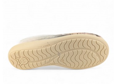 Zapatilla de andar por casa descalza para mujer y joven, con motivo en palas de gato y ratón. Realizada en textil muy suave y aterciopelado con forro textil afelpado y suela flexible y antideslizante. Plantilla extraíble. Fabricado en España por Gema García.