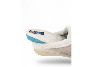 Zapatilla con cuña cómoda de mujer. Se puede utilizar para casa y calle. Realizada en material textil rejilla con cierre de dos velcros frontales. Corte en textil suave con brillo en la boca y las tiras de velcro. Suela antideslizante para mayor seguridad. Fabricado por la marca Cosdam.