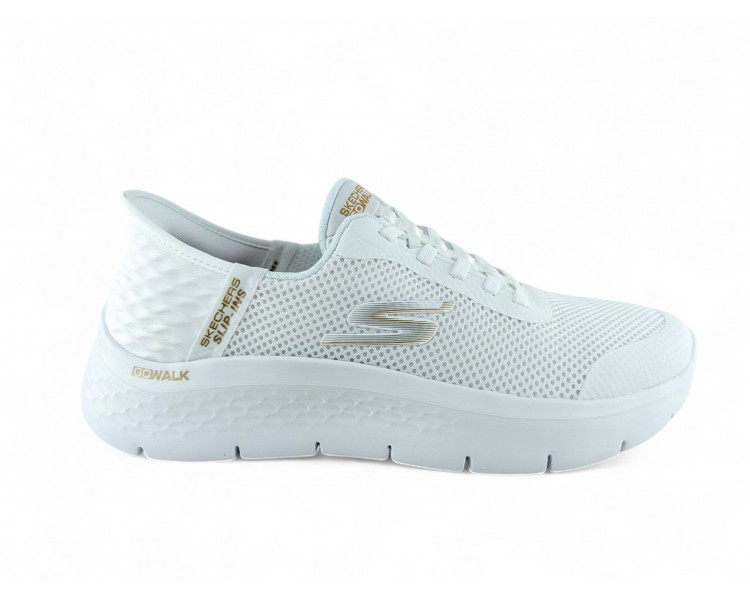 Disfruta de la comodidad y la amortiguación que te ofrece la Skechers Hands Free Slip-ins®: GO WALK Flex™ - Grand Entry. Estas deportivas veganas sin cordones, diseñadas con nuestro sistema Heel Pillow™, cuentan con una parte superior de tejido sintético y malla con cordones elásticos, una plantilla Skechers Air-Cooled Memory Foam™ y amortiguación ligera ULTRA GO®. Lavable a máquina.