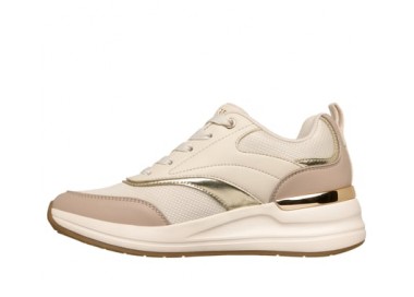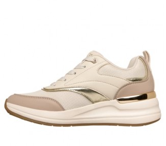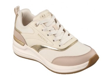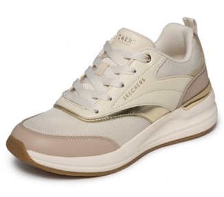 Brilla con estilo deportivo con las Skechers Street™ Billion 2 - Monroe. Estas zapatillas de moda Wedge Fit® cuentan con una parte superior de malla y duraleather con cordones, ribete metálico y clip en el talón, además de una plantilla Skechers Air-Cooled Memory Foam®.
