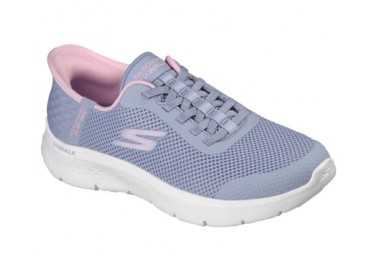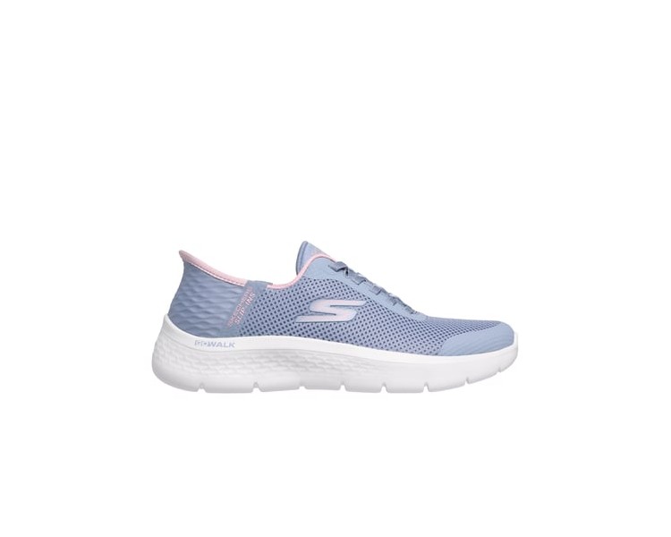 Disfruta de la comodidad y la amortiguación que te ofrece la Skechers Hands Free Slip-ins®: GO WALK Flex™ - Grand Entry. Estas deportivas veganas sin cordones, diseñadas con nuestro sistema Heel Pillow™, cuentan con una parte superior de tejido sintético y malla con cordones elásticos, una plantilla Skechers Air-Cooled Memory Foam™ y amortiguación ligera ULTRA GO®. Lavable a máquina.
