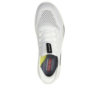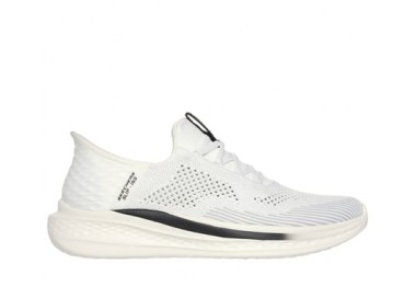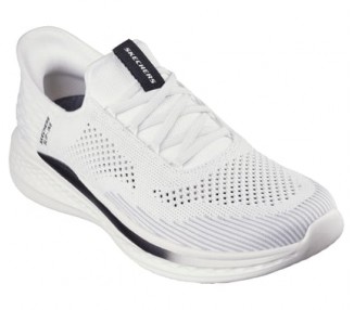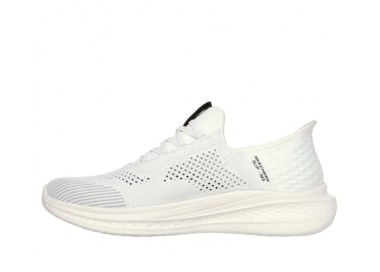 Camina cómodamente con la zapatilla Skechers Slip-ins® Relaxed Fit™: Slade - Quinto. Este modelo con cordones elásticos, diseñado con nuestro sistema Heel Pillow™, cuenta con una parte superior de knit técnico transpirable, una plantilla Skechers Air-Cooled Memory Foam™ con infusión de carbón y la amortiguación Skechers Goga Mat Arch™ para mejorar el apoyo. Lavable a máquina.