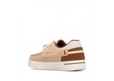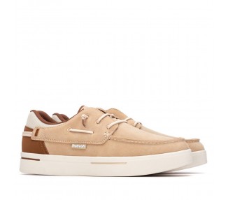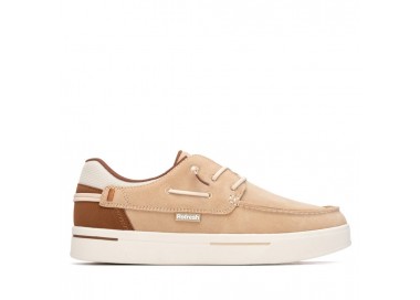 Zapato de tipo náutico para hombre y joven, realizado en piel serraje. Detalle en piel vegana en tono marrón en talonera. Piso bicolor. Cierre de cordón elástico que facilita su calce y ajuste perfecto al pie y plantilla muy acolchada y extraíble. Es un zapato de gran ligereza. Fabricado por la marca Refresh.