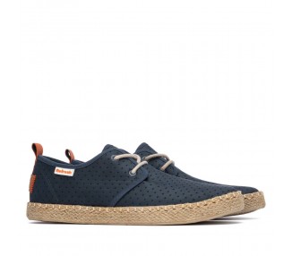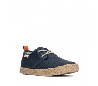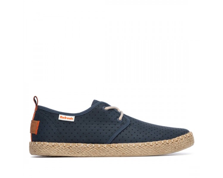Zapatilla fresca para hombre y joven, realizada en material que imita la piel y forro textil. Cuenta con un discreto bordado en el talón y en el costado exterior el logo de la marca. Plantilla conformada muy acolchada. Se ajusta mediante cordones para que puedas regularlas de forma perfecta a tus pies. Suela de goma con vira forrada de esparto a modo de adorno. Hechas por la marca Refresh.