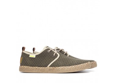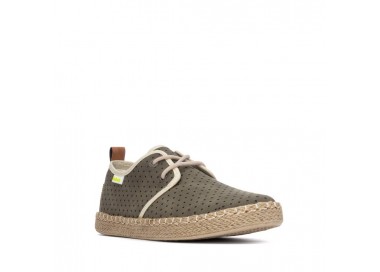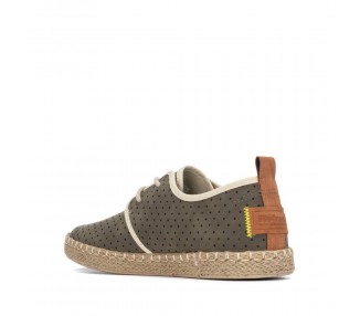 Zapatilla fresca para hombre y joven, realizada en material que imita la piel y forro textil. Cuenta con un discreto bordado en el talón y en el costado exterior el logo de la marca. Plantilla conformada muy acolchada. Se ajusta mediante cordones para que puedas regularlas de forma perfecta a tus pies. Suela de goma con vira forrada de esparto a modo de adorno. Hechas por la marca Refresh.