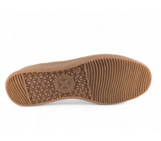 Sandalia de hombre cerrada por el talón y puntera, formada por tiras de piel entrelazadas y cierre velcro lateral para facilitar el calce del pie. Forro y plantilla de piel y gran confort. Es un artículo que se caracteriza por su comodidad y gran calidad, ya que esta hecha a mano. Fabricado por la marca Tamicus.