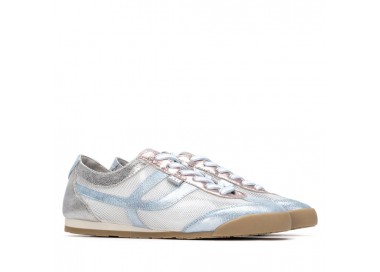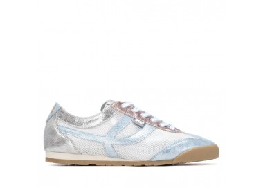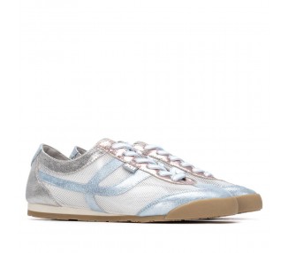 Zapatilla deportiva para mujer y joven, realizada en malla sintética y refuerzo en la cordonera. Cierre de cordones al tono. Boca y lengüeta acolchada aportando más comodidad al pie. Plantilla extraíble muy acolchada. Patín de EVA para mayor ligereza.