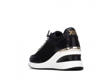 Zapatilla de mujer, de la marca Xti. Fabricada en material textil combinado con material que imita la piel, incorpora detalles metalizados que aportan un toque moderno y llamativo. Cuenta con una cuña de 7 cm que ofrece altura y comodidad. Modelo con cordones elásticos para un ajuste fácil y flexible, ideal para un look casual con estilo. Este modelo ha obtenido el certificado vegano por la organización mundial PETA (Organización de los derechos de los animales).
