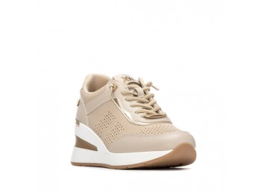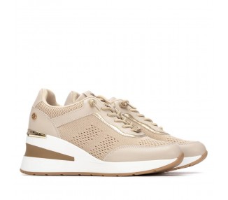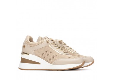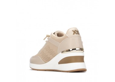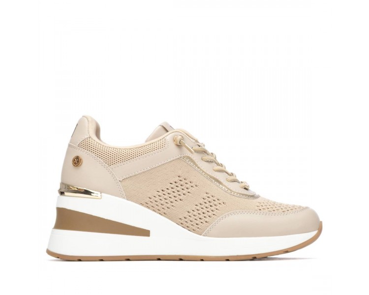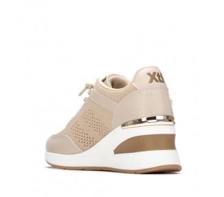 Zapatilla de mujer, de la marca Xti. Fabricada en material textil combinado con material que imita la piel, incorpora detalles metalizados que aportan un toque moderno y llamativo. Cuenta con una cuña de 7 cm que ofrece altura y comodidad. Modelo con cordones elásticos para un ajuste fácil y flexible, ideal para un look casual con estilo. Este modelo ha obtenido el certificado vegano por la organización mundial PETA (Organización de los derechos de los animales).