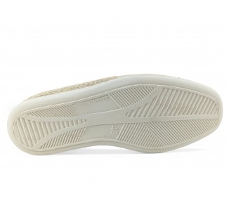 Zapato para mujer de la marca Doctor Cutillas, fabricado en piel y combinado en piel licra grabada al tono satinado. Forro interior textil técnico suave al tacto y plantilla conformada extraíble. Calce ANCHO ESPECIAL. Cierre de velcro para un ajuste sencillo al pie. Hecho en España por la marca Doctor Cutillas.