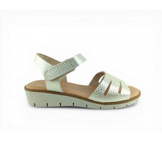 Sandalia para mujer y joven con cuña cómoda, realizada en piel de primera calidad. Pala de una sola pieza dividida en tres. Cuña sintética de bajo peso y monocolor. Planta de gel de gran comodidad. Cierre mediante velcro para un perfecto ajuste al pie. Fabricado por la marca Kaola.