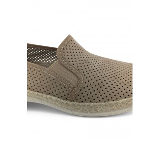 Menorquina básica de mujer formada por una pala lisa y tira de sujeción en la talonera con elástico interior (no se baja). Forro en piel y planta de piel cosida a la suela de goma antideslizante: Fabricado por la marca La Vida es Vella..