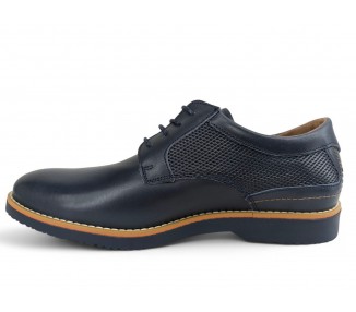 Zapato de cordón vestido para hombre y joven. Es un modelo bonito indispensable en cualquier armario. Sus líneas clásicas lisas y su piel grabada en los costados efecto de rombo hacen de este, la opción perfecta para tus looks más vestidos. Vira de color cosida al piso. Hecho por la marca Clayan.
