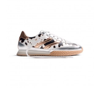 Zapato Sport para mujer, conformado en suave napa vegana con trama de tipo wateado combinado con napa brillo en contraste. Interior realizado en material textil técnico y cuello acolchado. Es un zapato de estilo urbano y actual. Cordonera central con cremallera funcional incorporada para una rápida sujeción al pie. Fabricado por la marca Mysoft.