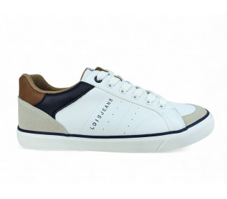 Zapatilla clásica de la marca Lois para hombre y joven, realizada en material imitación piel. Forro textil y plantilla acolchada. Detalle de la marca en costado y en lengüeta y talón. Cierre mediante cordones para un mejor ajuste. Pequeños detalles de color en el talón y costado. Es un modelo clásico y básico, que nunca se pasa de moda.
