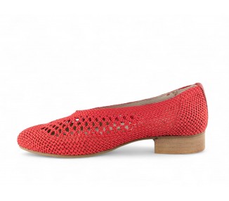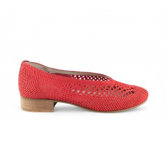 Zapatos tipo salón de tacón bajo de Nival en rafia color rojo. Diseño elegante con escote en pico, tacón cómodo de 2.5 cm y suela antideslizante. Tejido adaptable que se ajusta al pie.