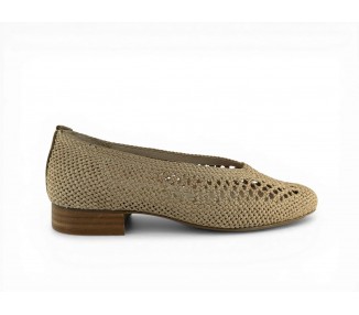 Zapatos tipo salón de tacón bajo de Nival en rafia color cuero. Diseño elegante con escote en pico, tacón cómodo de 2.5 cm y suela antideslizante. Tejido adaptable que se ajusta al pie.