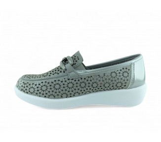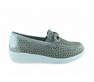 Zapato de calce ancho muy cómodo para mujer, realizado en microfibra ecológica con detalles calados al laser. Interior realizado en material técnico con la lengüeta acolchada. Adorno de cadena de color en combinación con el corte. Plantilla acolchada y extraíble para mayor higiene y comodidad. Suela de EVA natural flexible, con gran poder de absorción de impactos. Un modelo cómodo, ligero,...