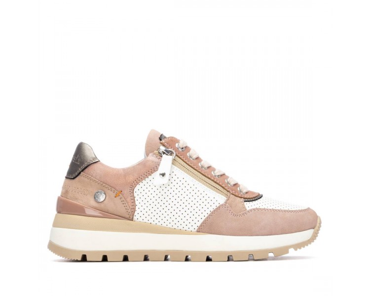 Zapatilla de mujer, de la marca Refresh, fabricada en material que imita a la piel combinada con antelína. Cremallera lateral con función. Cordones regulables para un ajuste perfecto. Gruesa suela dentada de goma. Este modelo ha obtenido el certificado vegano por la organización mundial PETA (Organización de los derechos de los animales). Fabricado por la marca Refresh.