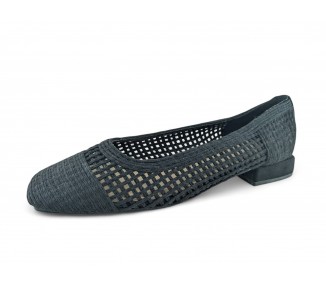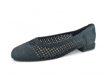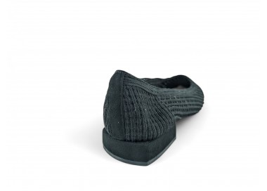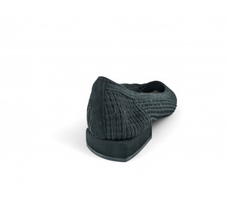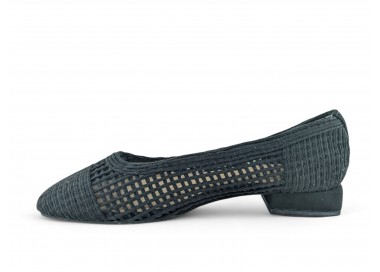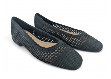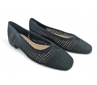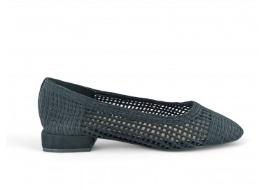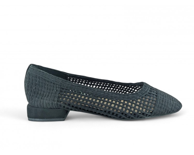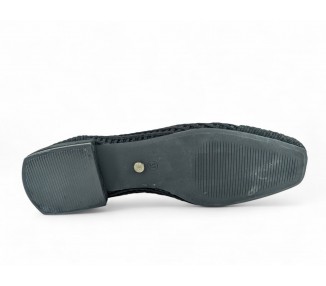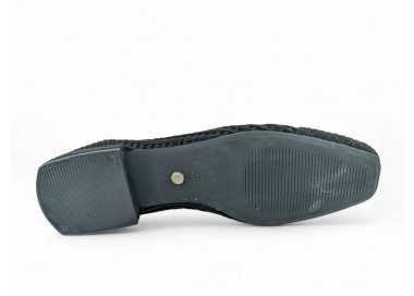 Zapato de salón para mujer color negro totalmente entrelazado en textil y con tacón bajo. Forro vegano. Planta muy acolchada y confortable. Piso flexible. Tacón forrado en ante al tono. Su tacón cuadrado le da una gran estabilidad en la pisada y su diseño hace que este modelo pueda combinar con todos los outfits que te imagines. Fabricado por la marca Buonarotti.