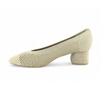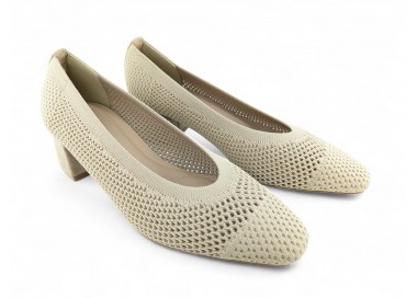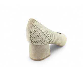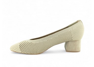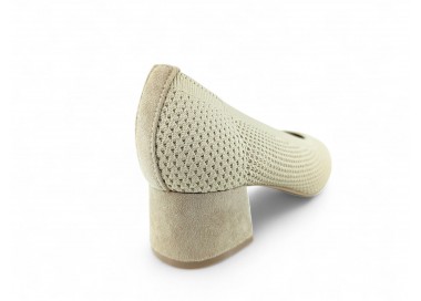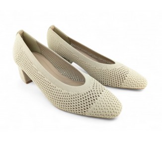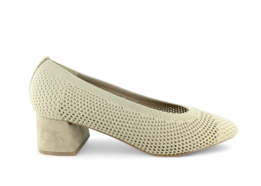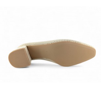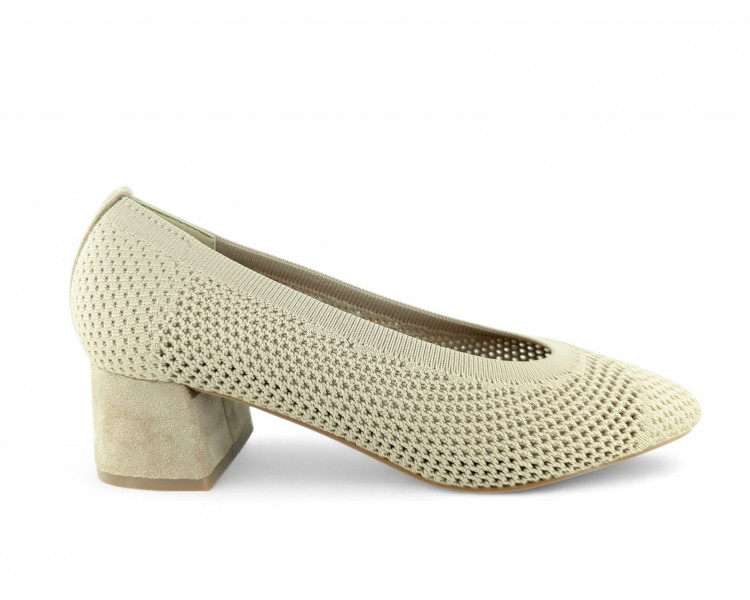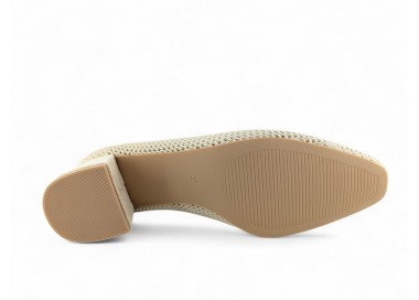 Zapato de salón color beig totalmente trenzado en textil y con tacón medio. Forro vegano. Planta muy acolchada y confortable. Piso flexible. Tacón forrado en ante al tono. Su tacón cuadrado le da una gran estabilidad en la pisada y su diseño hace que este modelo pueda combinar con todos los outfits que te imagines. Fabricado por la marca Buonarotti.
