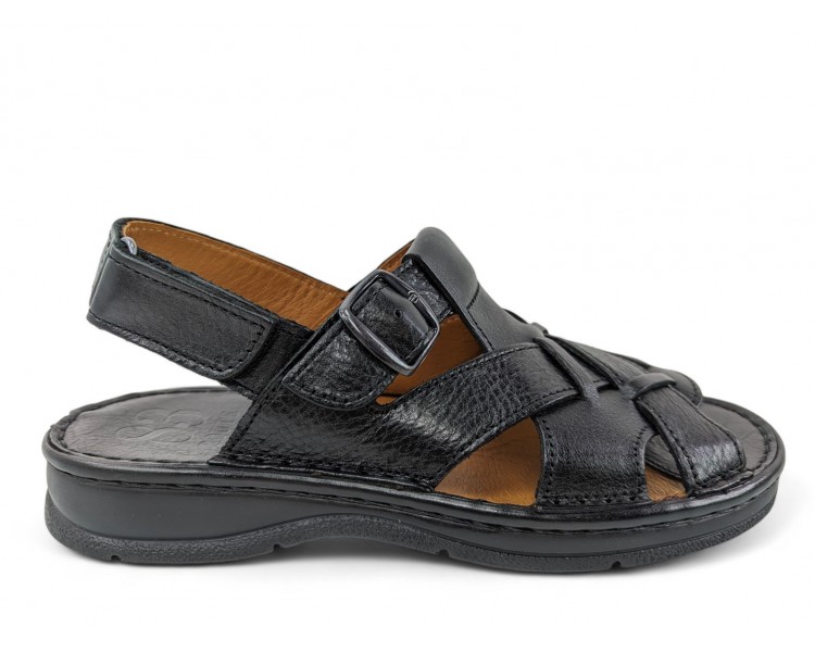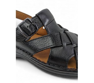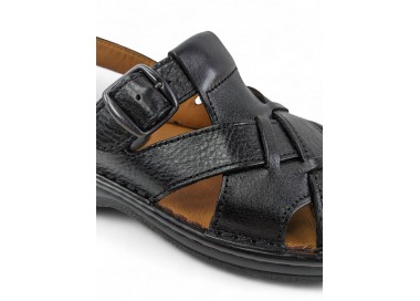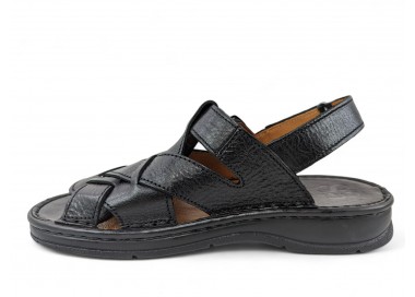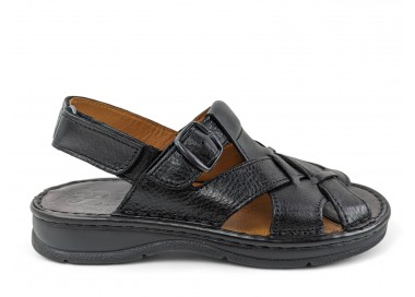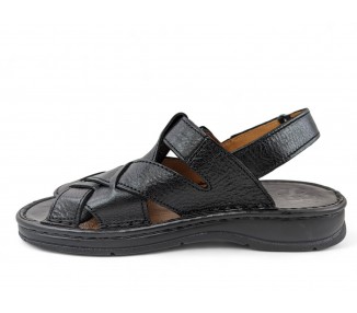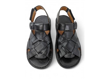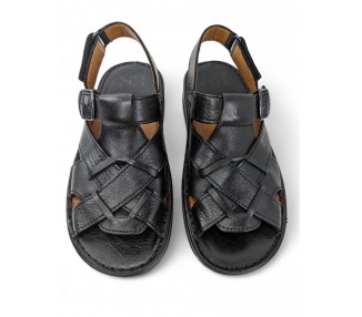 Sandalia de hombre abierta en la puntera y destalonada, formada por la unión entre si de tiras de piel. Cierre de velcro lateral para facilitar el calce del pie y hebilla ajustable para poder abrirlas en el empeine. Es un artículo que se caracteriza por su comodidad y gran calidad, ya que están hechas a mano. Fabricada por la marca Route 83.