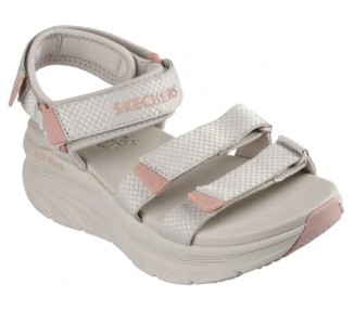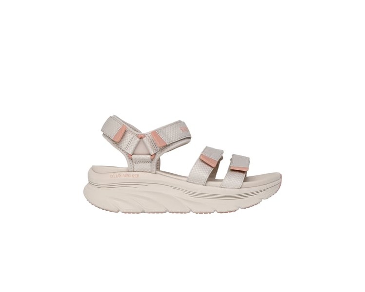 Disfruta de largos paseos con la cómoda sujeción de Skechers Relaxed Fit™: D'Lux Walker sandal-Sea-Scape. Esta sandalia de estilo deportivo cuenta con correas de tejido de red con cierre de velcro y una plantilla Luxe Foam®. Lavable a máquina.