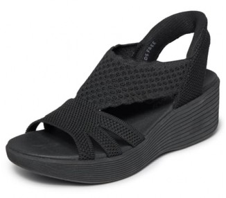 Disfruta de la arena, el sol y el surf con la Skechers Tantriz - Fritz. Una sandalia de dedo casual con parte superior de lona deshilachada y media suela que imita las vetas de la madera y con rayas deportivas.