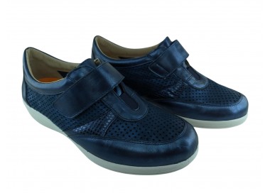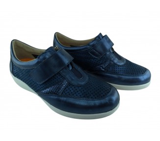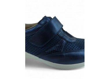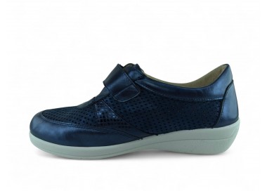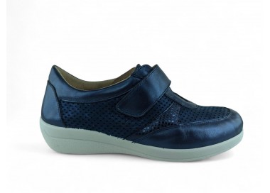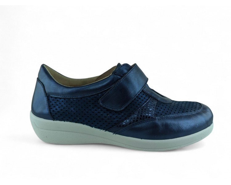 Zapato para mujer de la marca Doctor Cutillas, fabricado en piel y combinado en malla licra perforada en tona satinado. Forro interior textil técnico suave al tacto y plantilla conformada extraíble. Calce ANCHO ESPECIAL. Cierre de velcro para un ajuste sencillo al pie. Hecho en España por la marca Doctor Cutillas.