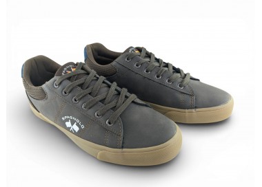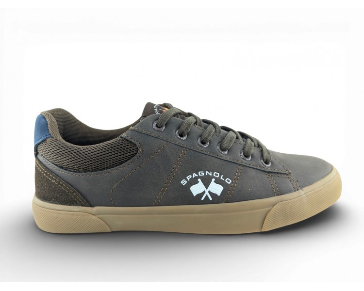 Zapatilla casual de la marca Spagnolo, conformada en microfibra en tacto ante. Interior realizado en material textil y cuello acolchado. Es un deportivo estilo urbano y actual. Logotipo en el costado exterior y lengüeta. Cordonera central al tono para una buena sujeción al pie y suela de caucho color caramelo.