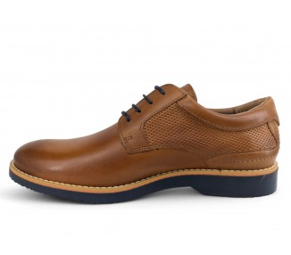Zapato de cordón vestido para hombre y joven. Es un modelo bonito indispensable en cualquier armario. Sus líneas clásicas lisas y su piel grabada en los costados efecto de rombo hacen de este, la opción perfecta para tus looks más vestidos. Vira de color cosida al piso. Hecho por la marca Clayan.