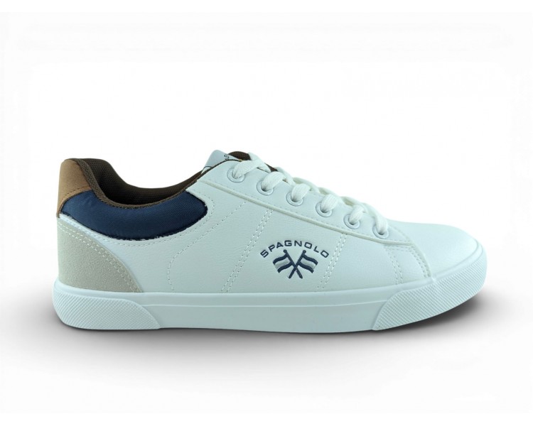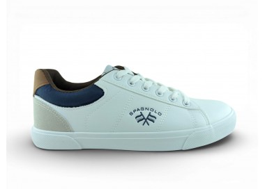Zapatilla clásica de la marca Spagnolo para hombre y joven, realizada en material imitación piel. Forro textil y plantilla acolchada. Detalle de la marca en costado y en lengüeta. Cierre mediante cordones para un mejor ajuste. Pequeño detalle de color en el talón. Es un modelo clásico y básico, que nunca se pasa de moda.