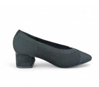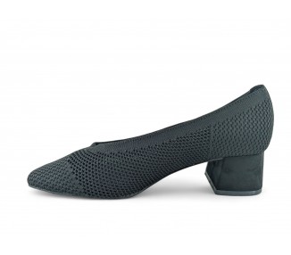 Zapato de salón color negro totalmente trenzado en textil y con tacón medio. Forro vegano. Planta muy acolchada y confortable. Piso flexible. Tacón forrado en ante al tono. Su tacón cuadrado le da una gran estabilidad en la pisada y su diseño hace que este modelo pueda combinar con todos los outfits que te imagines. Fabricado por la marca Buonarotti.