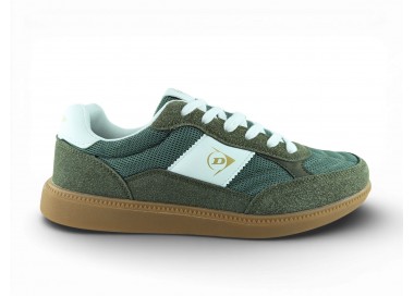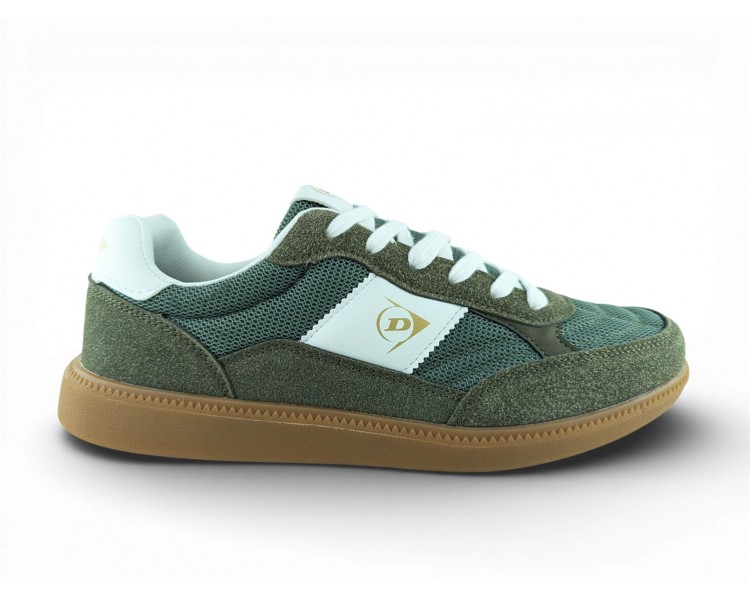 Zapatilla clásica de la marca Dunlop para hombre y joven, realizada en material vegano imitación piel combinado con malla. Forro textil y plantilla muy acolchada Shock Absortion. Piso en color Caramelo. Detalle de la marca en costado, talón y en lengüeta. Cierre mediante cordones para un mejor ajuste. Pequeño detalle de color en el talón. Es un modelo clásico y básico, que nunca se pasa de moda.