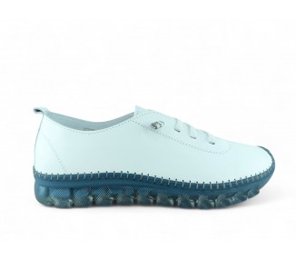 Zapato sport de la marca 48 hours para mujer, realizado en piel de primerísima calidad en color blanco. Cierre mediante cordón elástico que facilita su calce y ajuste al pie. Suela de goma flexible y antideslizante.
