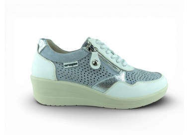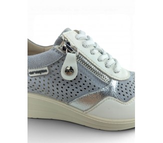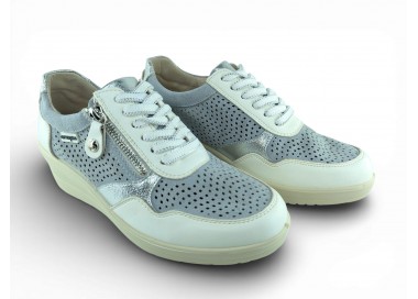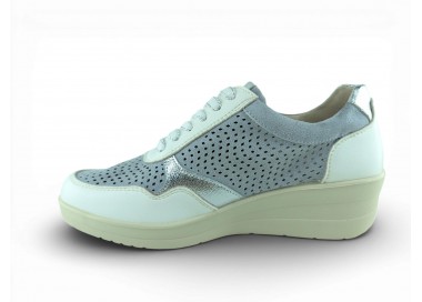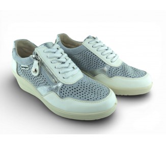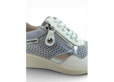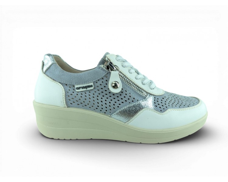 Zapato sport de la marca Amarpies para mujer, realizado en piel ante en combinación con piel satinada perforada para una mayor transpiración. Plantilla extraíble acolchada “Memory esponge ” que amortigua la pisada y se adapta a la forma del pie. Cordones con incrustaciones brillantes. Modelo cómodo pensado para un uso diario combinable con tus estilos.
