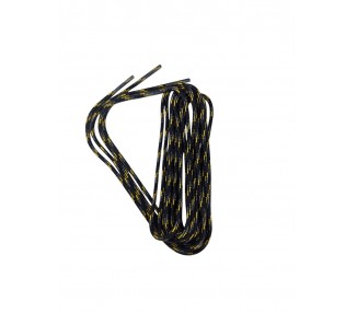 Cordón redondo y grueso. Jaspeado en tres colores: negro, gris y amarillo. Hecho por la marca Chiruca.