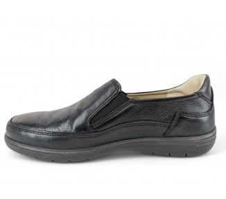 Mocasín para hombre, realizado en piel bombeada con elásticos laterales para facilitar el calce del pie. Bordón pespunteado en la pala. Forro interior de piel combinado con textil y plantilla extraíble para una mayor higiene. Fabricado en España por Luisetti.
